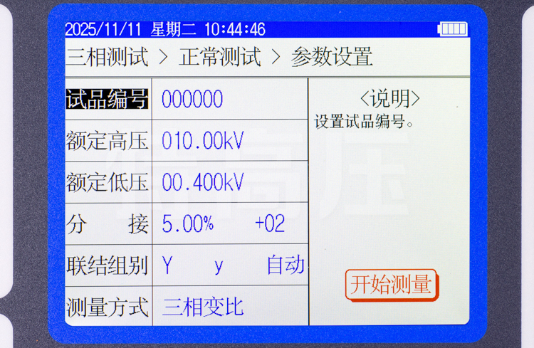 • 具有盲測功能,即在不知道高低壓聯(lián)結(jié)方式時進行變比、組別測試