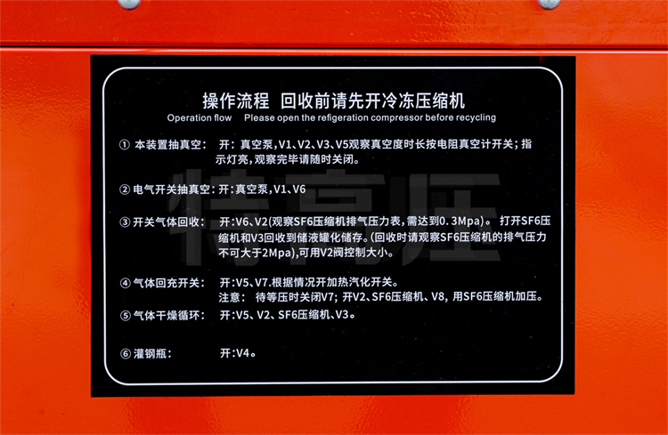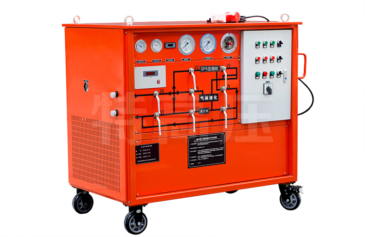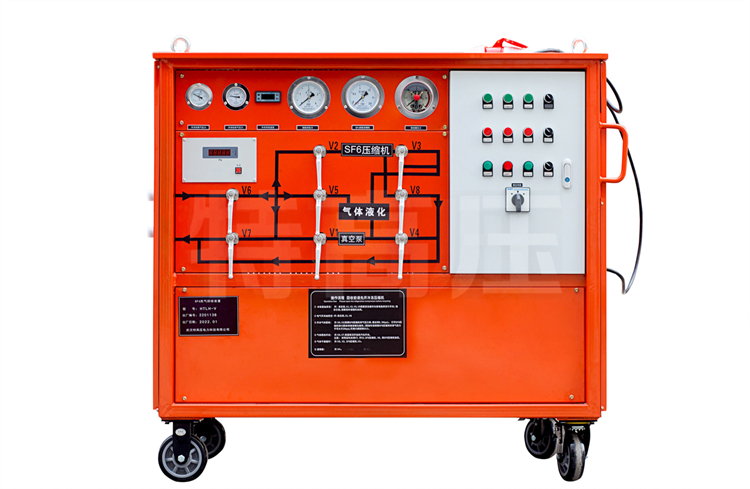 SF6 氣體作為一種絕緣氣體,具有無毒、不可燃,以及良好的絕緣特性,其絕緣強(qiáng)度大大高于傳統(tǒng)的絕緣氣體,并具有良好的滅弧性,因此廣泛應(yīng)用于SF6電器。由于 SF6 氣體價(jià)格昂貴,且在電弧、電火花和電暈放電的作用下,會分解產(chǎn)生有毒成份。因此 SF6 電器設(shè)備應(yīng)用時(shí)需要將 SF6 氣體回收。本裝置就是為了制造和維修 SF6 電器設(shè)備時(shí),回收和充加 SF6 氣體的一種專用設(shè)備。